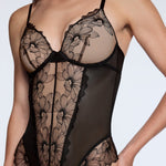 Designed with our signature Lift Up padding for natural lift and shape, this piece features sheer floral embroidery, mesh side paneling for a snatched silhouette, and underwire support for structure. Fully adjustable straps and a hook-and-eye closure ensure a customizable fit.